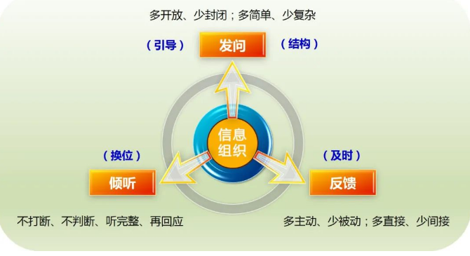一次有效的溝通,通常需要四種技巧來(lái)保障:信息組織、發(fā)問(wèn)、傾聽(tīng)、反饋。其中,信息組織是基礎(chǔ),也是有效溝通的前提。為簡(jiǎn)化問(wèn)題,本文只針對(duì)一對(duì)一的溝通情境。